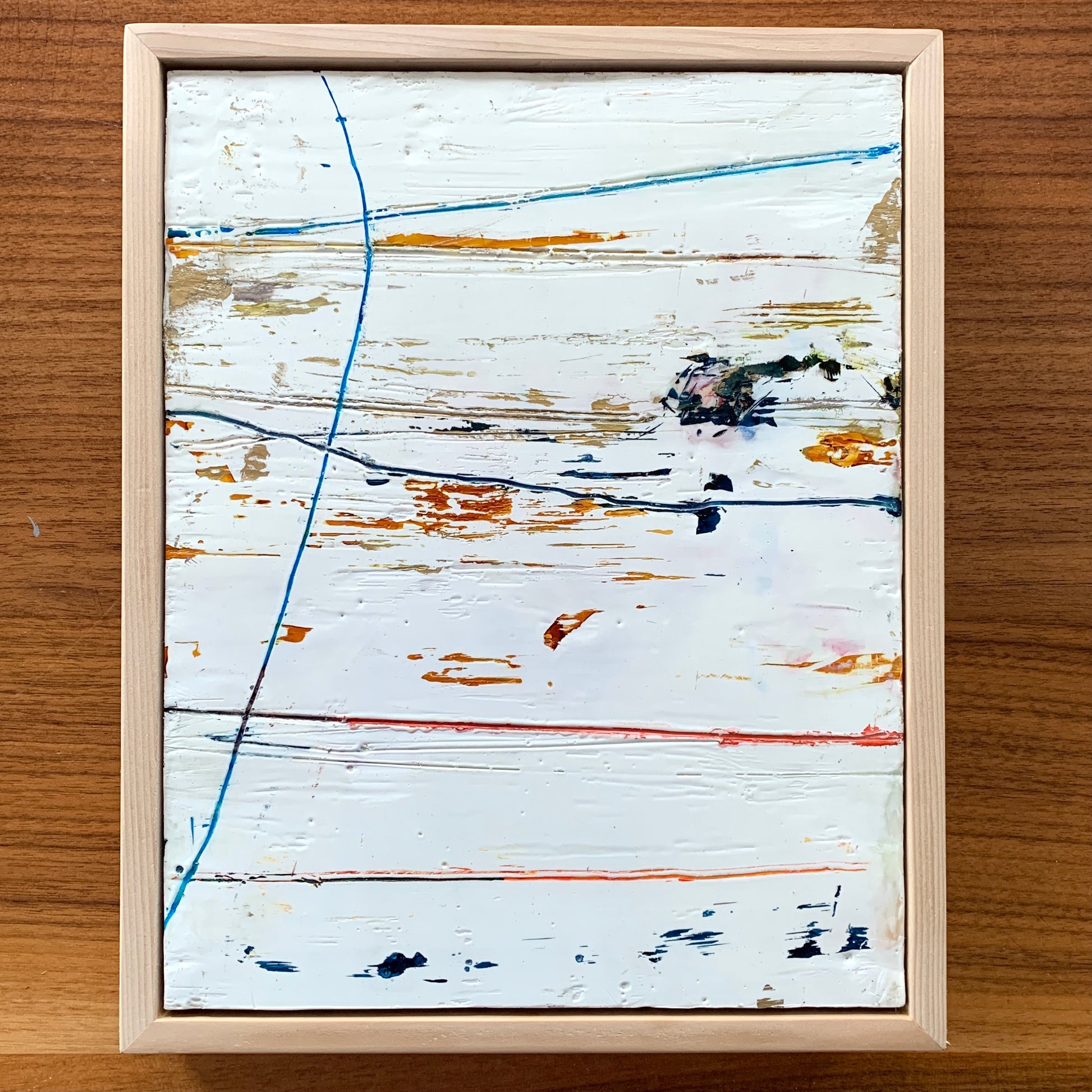 An original encaustic (beeswax) painting in a custom-made hemlock frame.