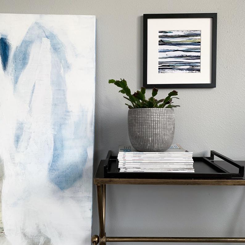 A high quality print of a water-inspired merging of alcohol ink and acrylic paint, in various blues. The print is on matte luxe photo paper, and signed on the back.